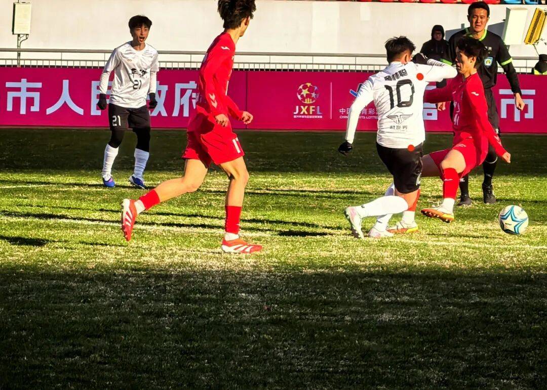 中午12点半,南湖队与嘉善队的比赛率先开打。尽管寒风凛冽,但场上比拼的热浪却是一浪高过一浪。上半场,双方对战异常胶着,南湖队屡次发起攻势,多次制造极具威胁的射门机会。下半场易边再战,南湖队掀起一波进攻小高潮,38号队员王腾翔一分钟内完成梅开二度,最终帮助球队以2比0战胜嘉善队。在随后进行的桐乡队与平湖队的比赛中,开场不久,平湖队27号球员沈能威就闪电破门,引燃全场,帮助球队以1比0领先上半场。下半场,两队互有攻守,但平湖队场面占优,再次破门得分,最终以2比0战胜桐乡队。
