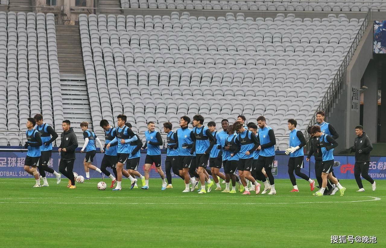 毛伟杰、宋岳等大连英博海发球员踏入上海体育场,准备进行例行的赛前一天踩场训练,从训练过程看,全体球员心态轻松,一片欢声笑语。