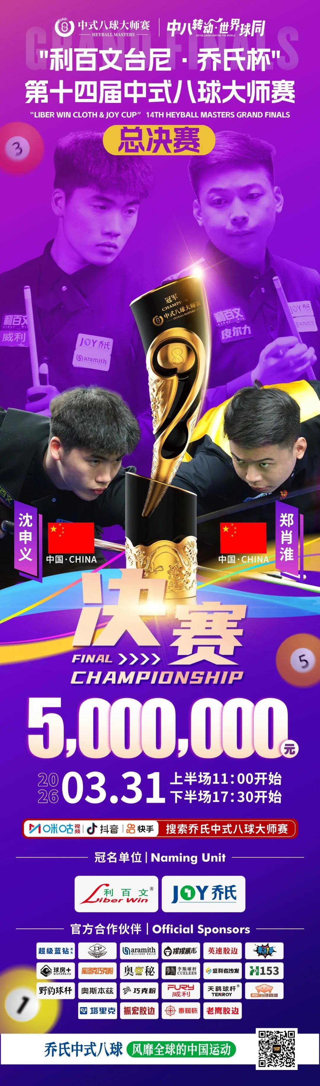 2026-04-03宝威体育,宝威体育官网,宝威体育APP下载,宝威体育网址中八转动,世界球同!3月30日,“利百文台尼·乔氏杯”第十四届中式八球大师赛总决赛迎来终极篇章。经过今日高强度、高水准的残酷角逐,挺进决赛舞台的选手可谓“浴火而生”。明日,11:00-15:00、17:30-比赛结束,沈申义VS 郑肖淮——谁将问鼎巅峰王座,捧起象征中式八球至高荣誉的金号角奖杯?终极一战,敬请期待!明日下半场比赛17:30,央视CCTV5+开启直播,全球共同见证!