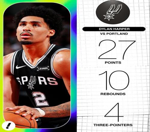 赛后马刺主帅米奇谈到哈珀:就像你们看到他的数据那样他很出色,在季后赛的对抗中他的身体天赋肉眼可见,强度越大越能看出一个球员的基本功,有天赋、有能力的球员就能接管比赛。